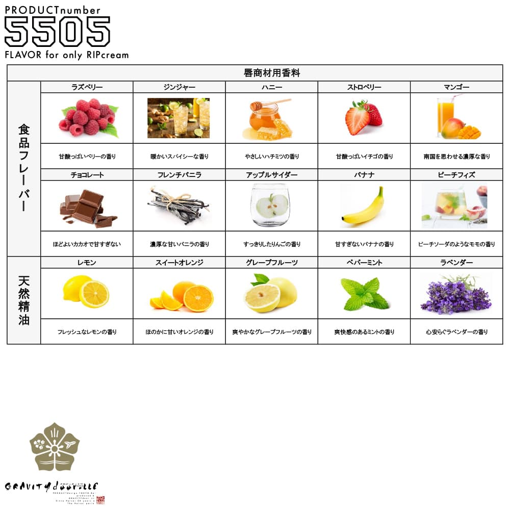 下記画像内の香料一覧から系統・香料を選択いただき、香りテスターを提出し決定いただきます。