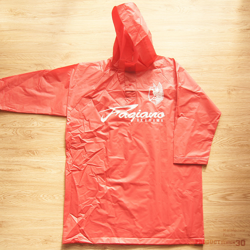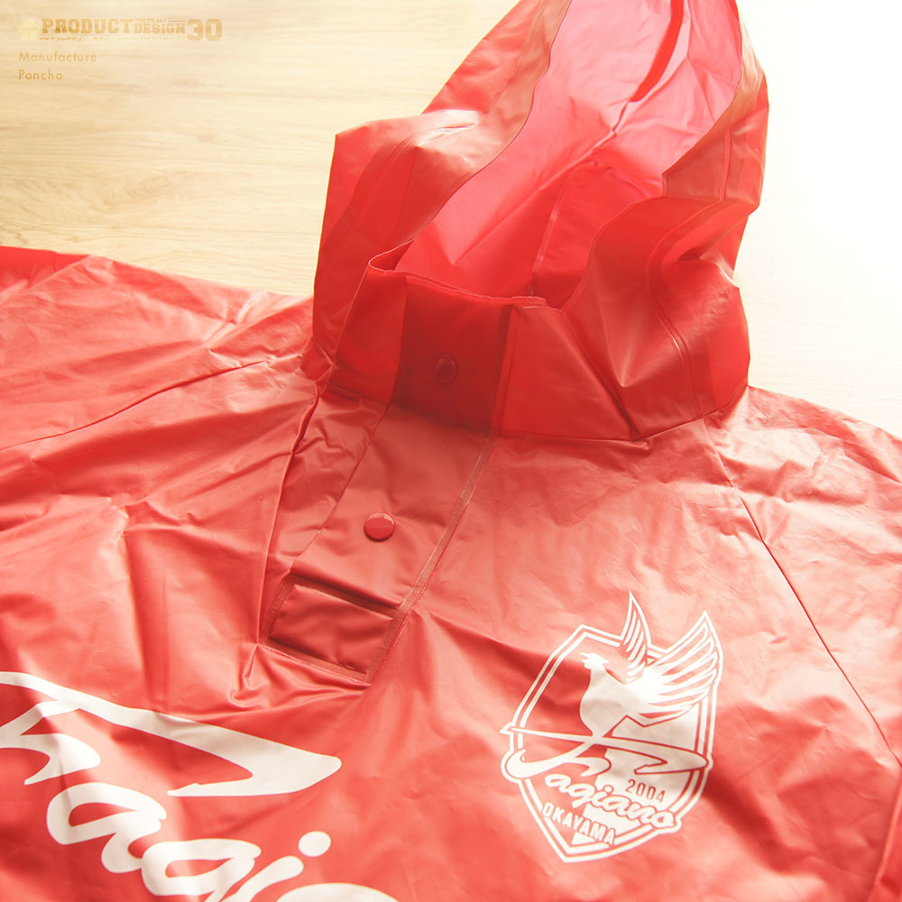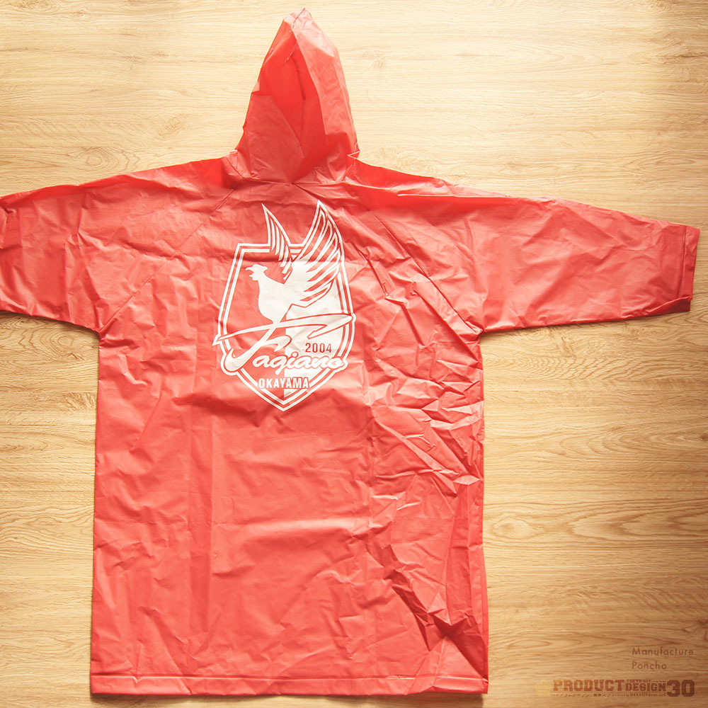 ポリエステル生地に撥水加工を施し、フルカラー で製作可能なポケット付きポンチョタイプと、