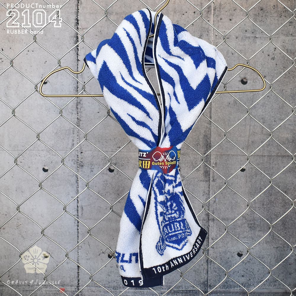 腕に着けるだけでなく、マフラータオルのホルダーとしても使われるようになり、タオルとセットで販売されています。